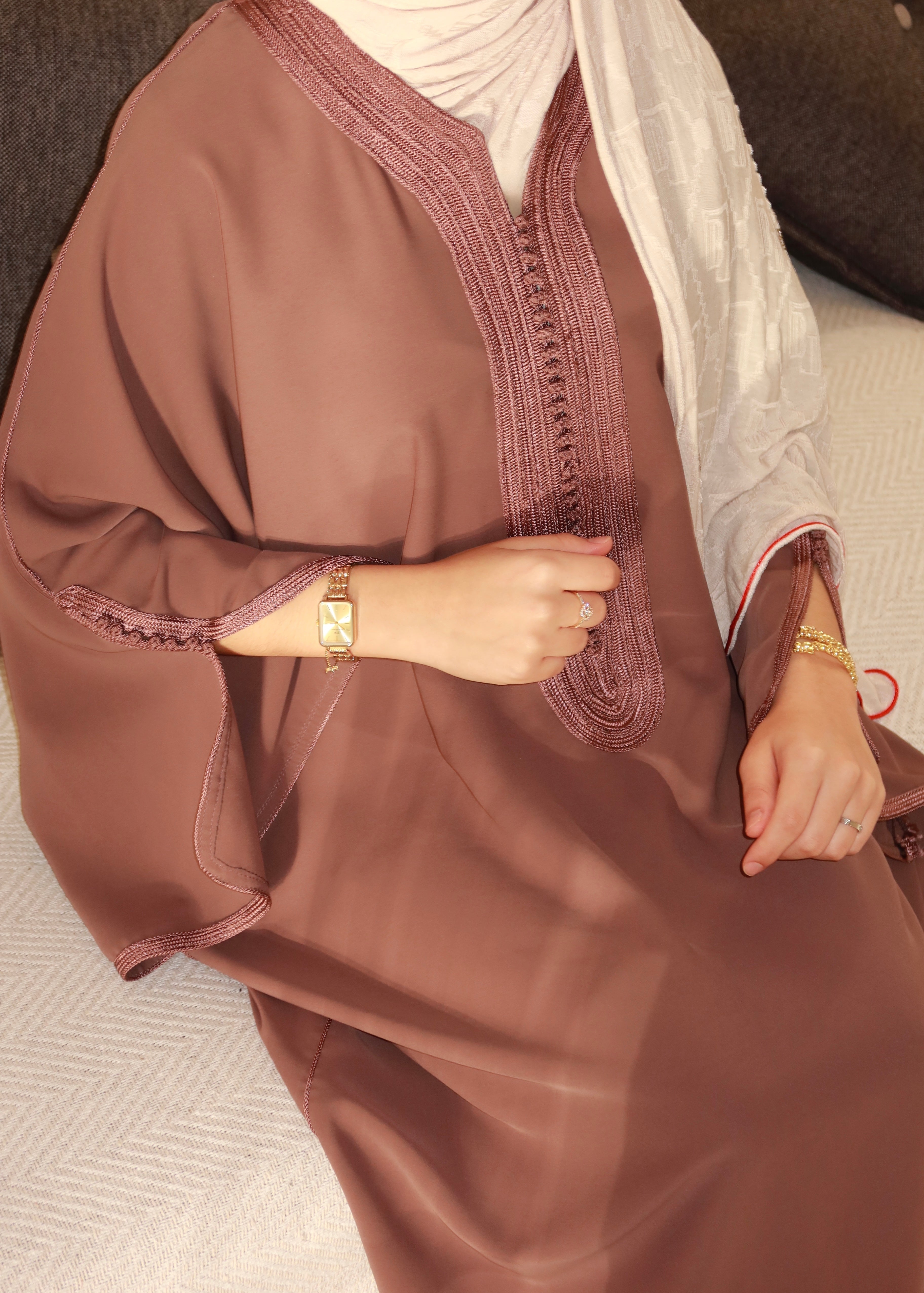 Nos confections sont entièrement fabriquées au Maroc, par des artisans d'exception qui perpétuent un héritage précieux, transmis de génération en génération. Chaque pièce est réalisée avec une attention minutieuse aux détails.